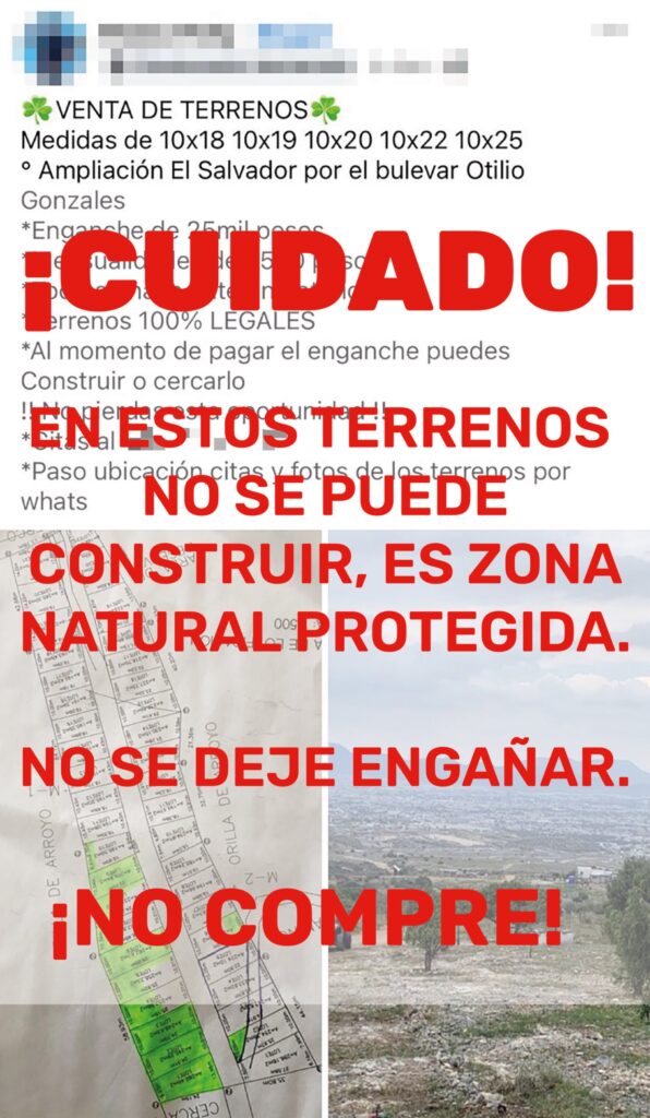 Se exhortó a la población a que, si observa alguna oferta en medios como Facebook, ya sea en Marketplace o grupos de ventas, acudir a la Dirección de Desarrollo Urbano o Catastro, para verificar que se trate de una venta legal.