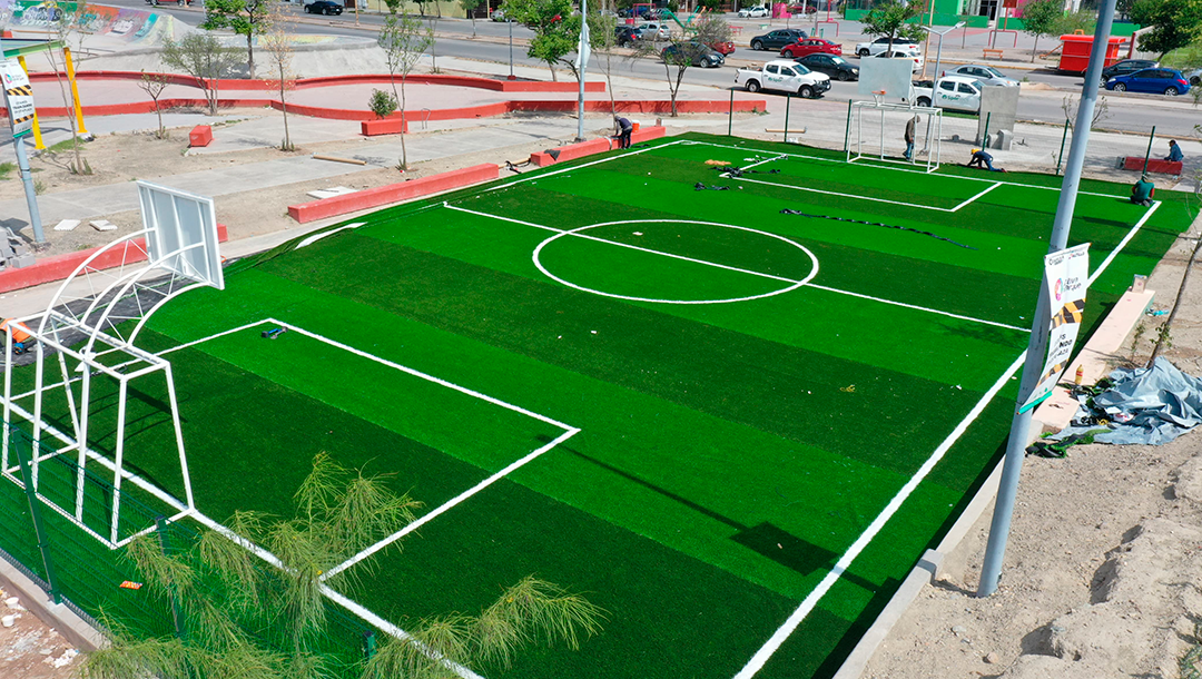 En cuanto a la plaza de la colonia Saltillo 2000, además de la transformación de las dos canchas deportivas, se trabaja en la rehabilitación total de los juegos infantiles, las áreas verdes, trabajos de reforestación, además de contemplar pintura en toda la plaza, así como en el skate park.