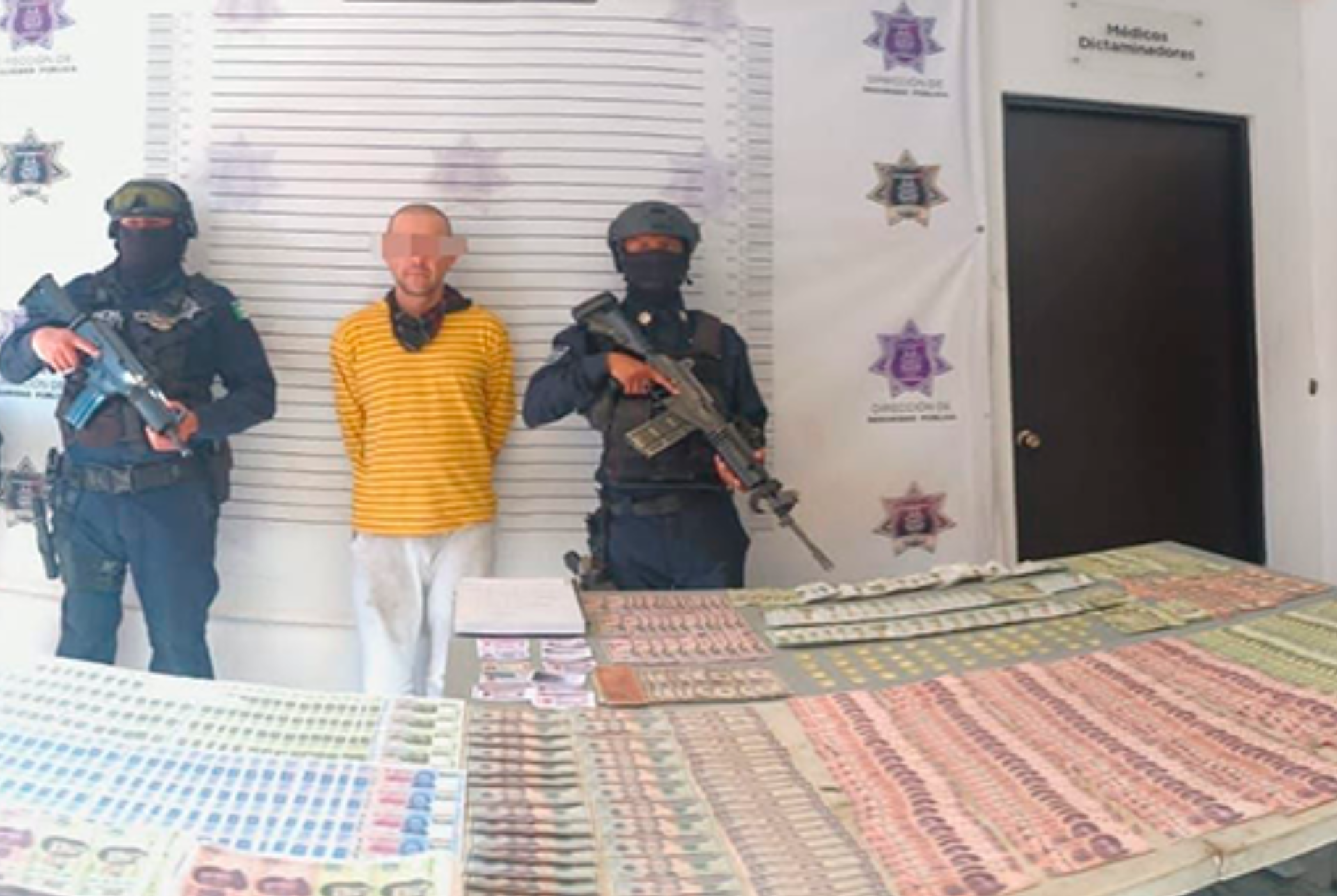 Además, se le aseguraron 789 billetes falsos de 500 pesos, 194 de 200 y 984 de 100 pesos.