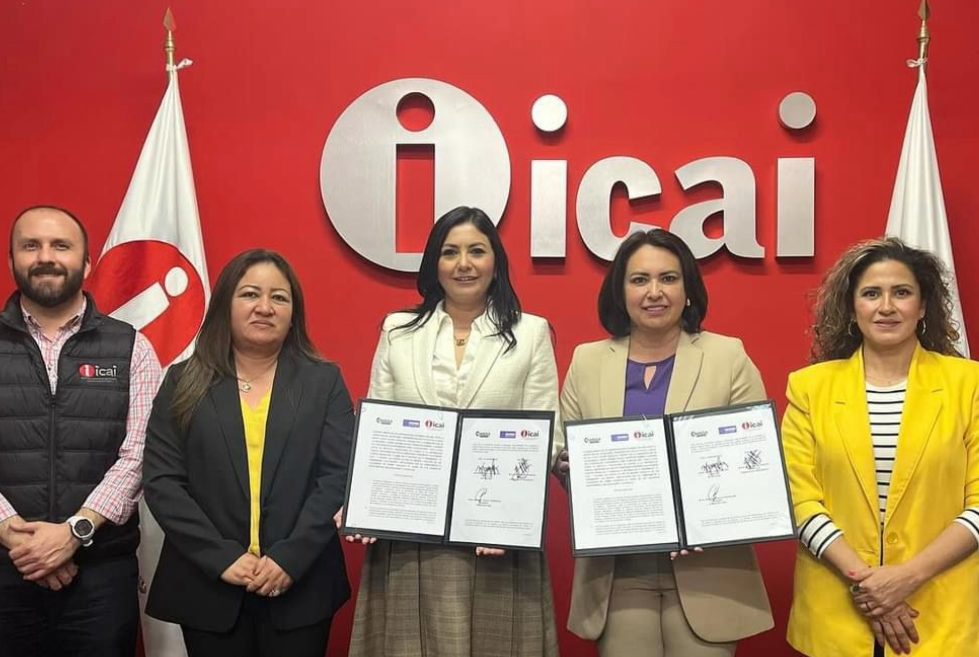 Además de las titulares del ICAI y de la Secretaría de las Mujeres, en el evento estuvieron presentes: Mtra. Maribel Araceli Rodríguez Ramírez, Subsecretaria de la Secretaría de las Mujeres; Lic. Indira Vega de la Peña, Directora de Capacitación de la Secretaría de las Mujeres; Lic. Karen Estrada Delabra, Secretaria Técnica de la Secretaría de las Mujeres; Lic. Susana Guadalupe Ortiz Galindo, Jefa de la Unidad de Transparencia de la Secretaría de las Mujeres; Lic. Bertha Isela Mata Ortiz y Mtro. Javier Díez Urdanivia del Valle Comisionada y Comisionado del ICAI; Lic. Alani Navil Martínez Sierra, Oficial Mayor del ICAI; así como Directores de área del ICAI.