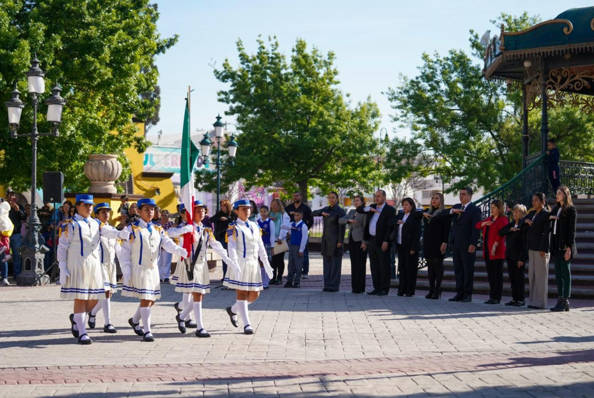 En la Plaza de Armas, el secretario de Ayuntamiento, Alejandro González Farías, encabezó la ceremonia cívica junto a síndicas, regidores, y funcionarios de la administración municipal.