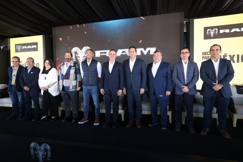 El gobernador Manolo Jiménez Salinas acompañó a directivos de la empresa Stellantis en el lanzamiento del nuevo portafolio de RAM México, vehículos que se producirán en Saltillo para el mercado nacional, con lo que se fortalecen sus ventas en México y en diversas partes del mundo.