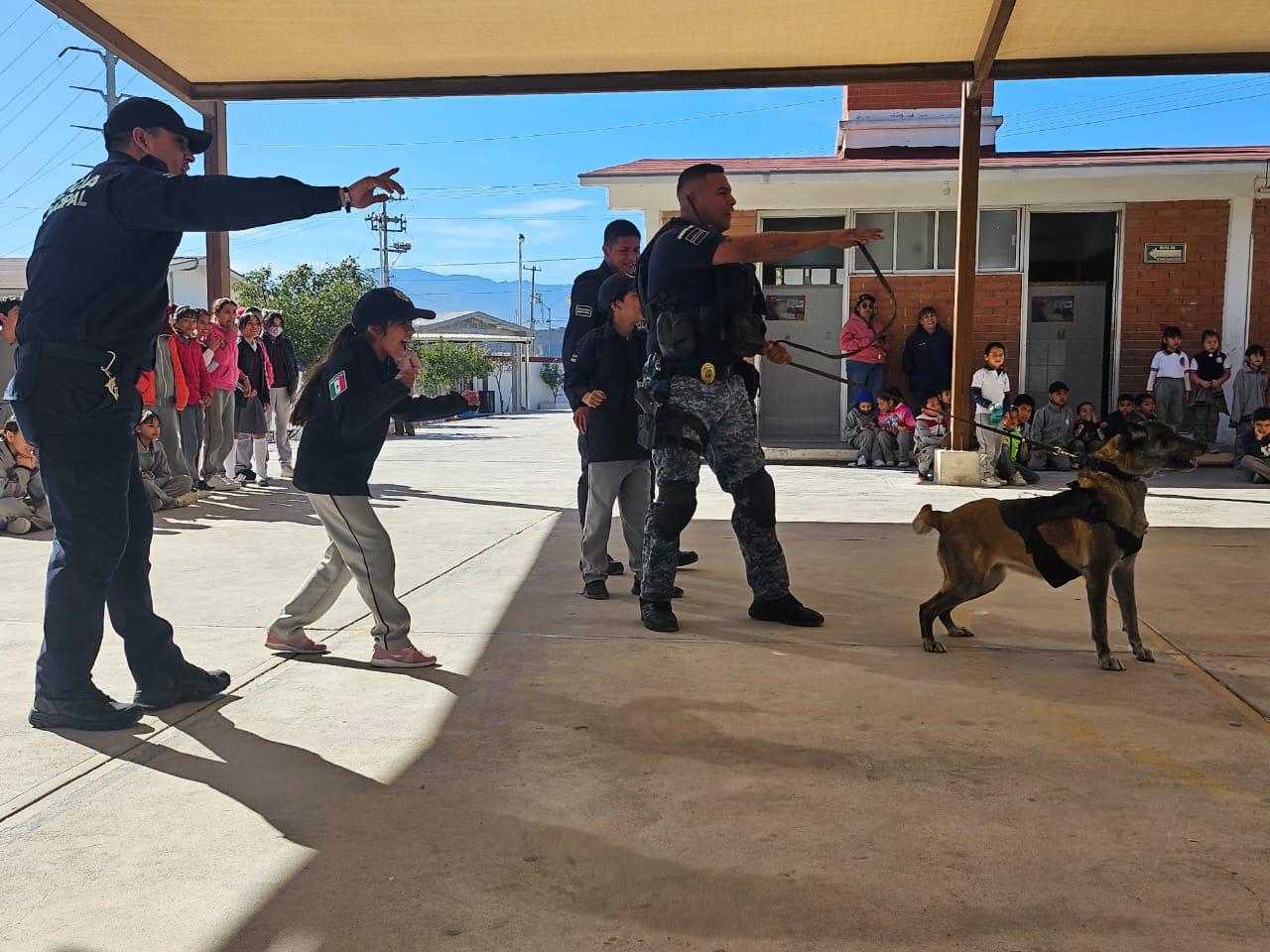 Durante esta semana se realizó una visita del agrupamiento K9 a la escuela primaria Lorenzo Martínez, ubicada en la Calle Profesora Francisca Rodríguez Sánchez, de la colonia Parajes del Valle.