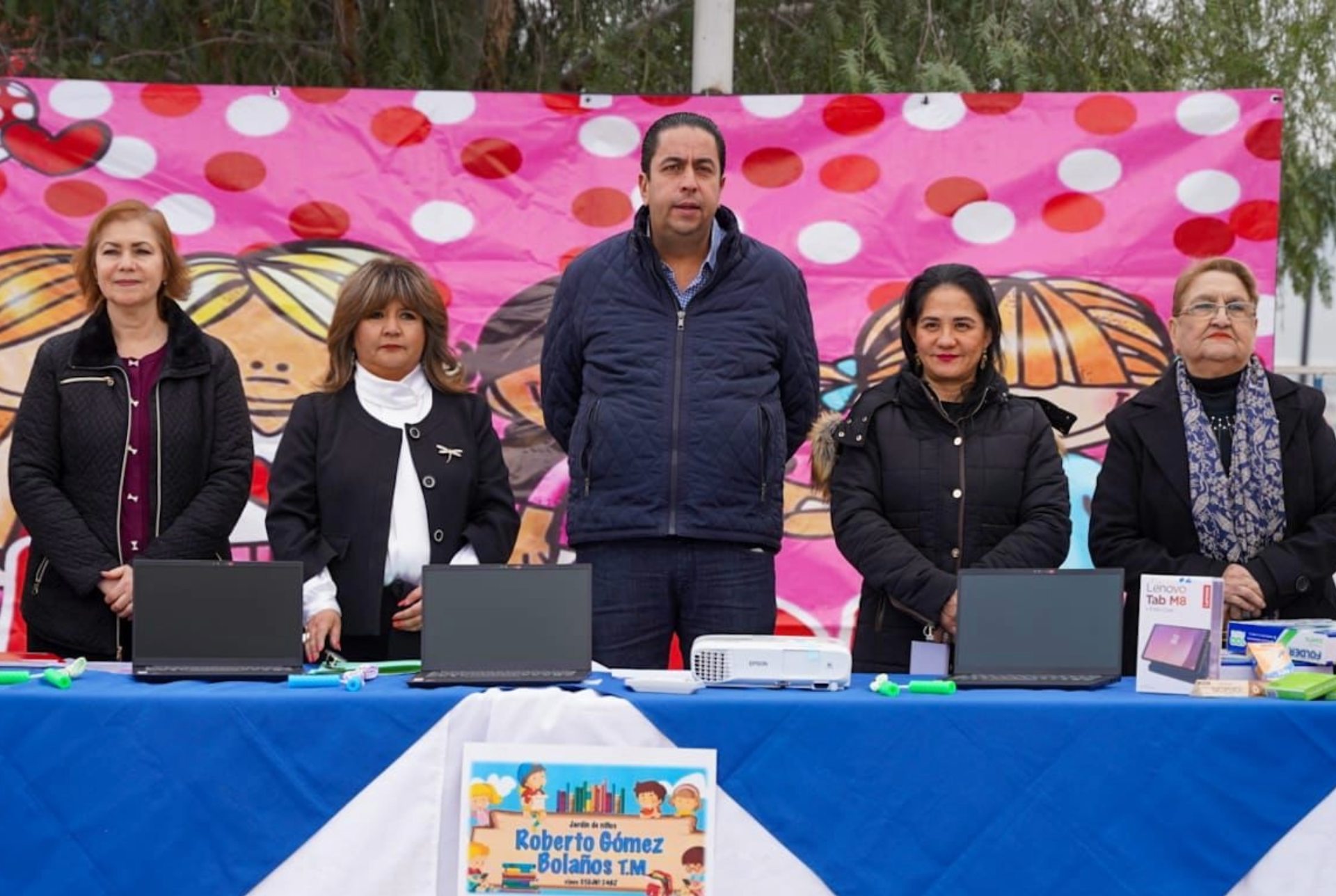 El alcalde Chema Morales Padilla entregó material diverso con valor de 100 mil pesos para el Jardín de Niños “Roberto Gómez Bolaños”, en Parajes de los Pinos, por medio del programa “Mejora tu Escuela”.