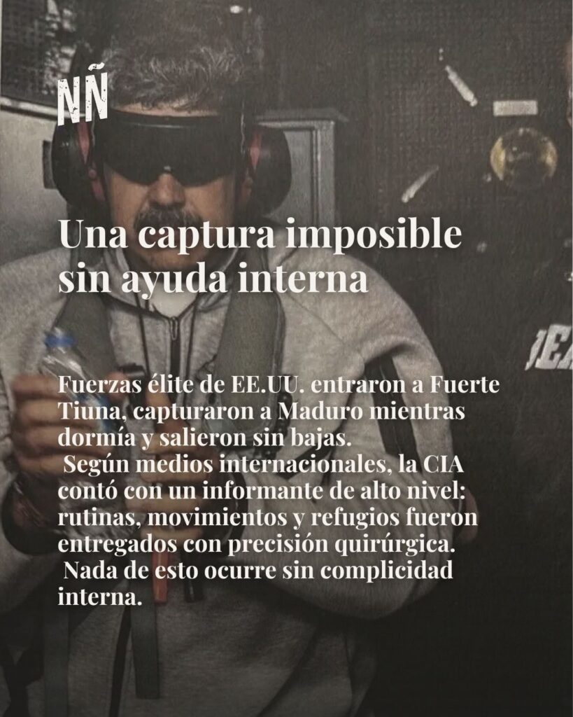 La captura de Nicolás Maduro y su esposa Cilia Flores en la operación militar estadounidense “Absolute Resolve” el 3 de enero de 2026 ha desatado una ola de especulaciones sobre una posible traición interna. El propio hijo del exmandatario, Nicolás Maduro Guerra (“Nicolasito”), lo insinuó claramente en un mensaje difundido horas después: pidió unidad en el chavismo, evitar “sembrar dudas” y advirtió que “la historia dirá quiénes son los traidores”. Sus palabras no parecen casuales en un régimen donde las purgas por deslealtad han sido recurrentes.