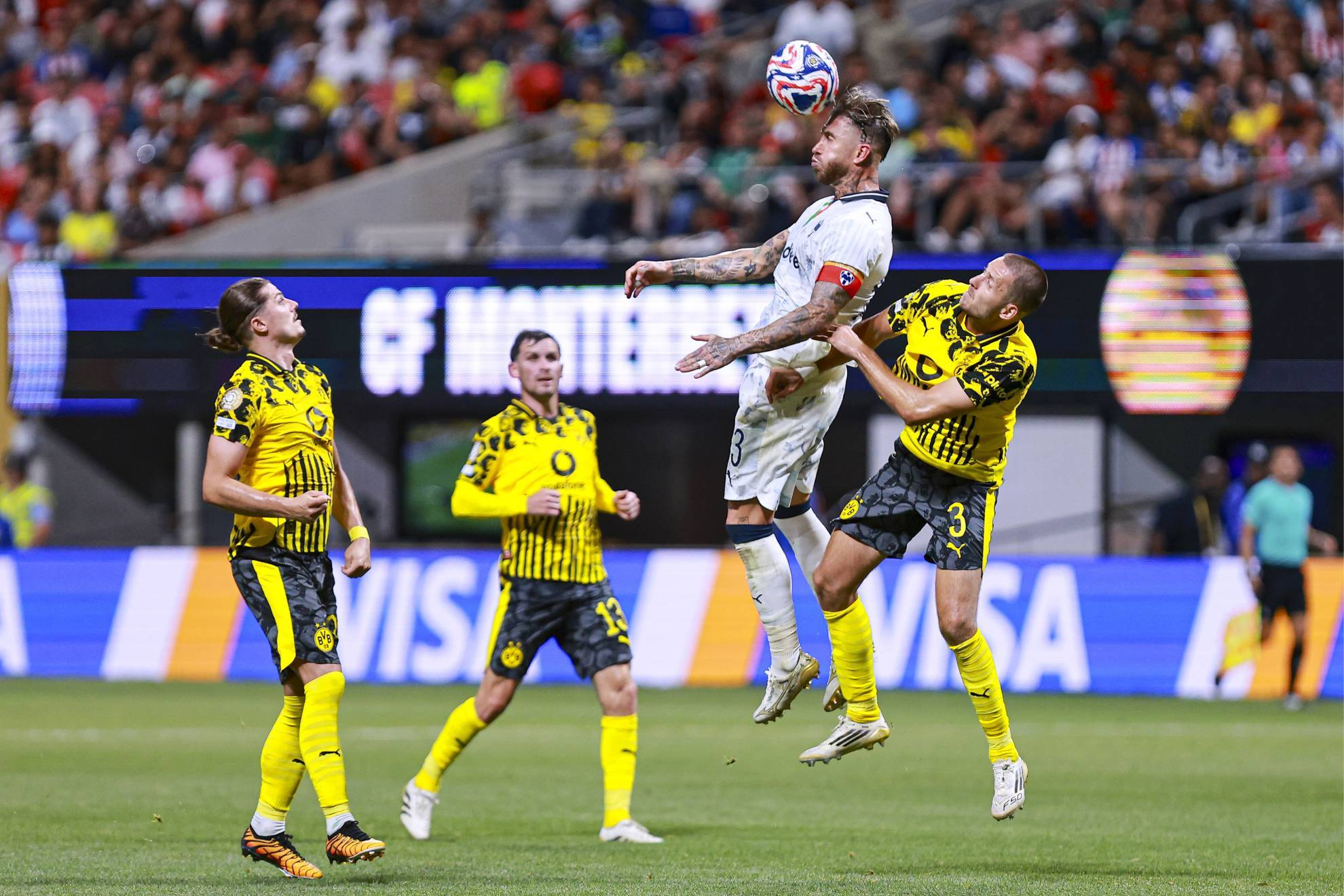 La última gran chance de Rayados sobre un Borussia Dortmund, cuyo entrenador Niko Kovac pedía ya el silbatazo final, fue en un cabezazo de Sergio Ramos que pasó casi rosando el poste derecho.