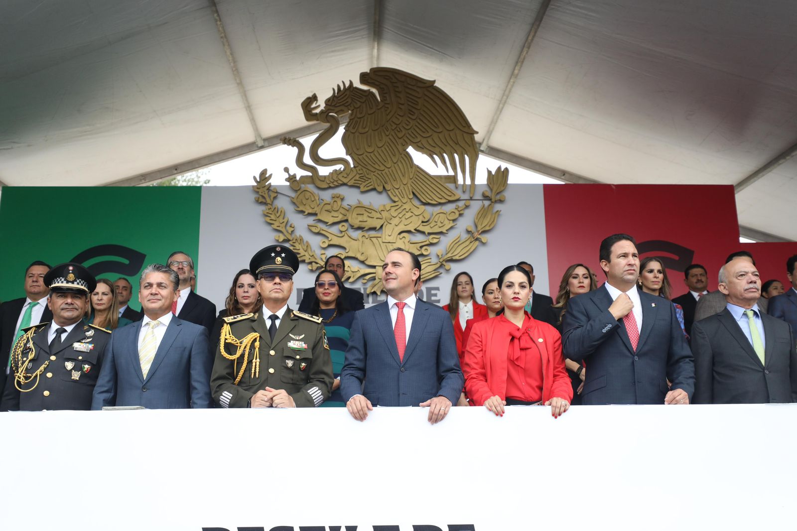 En el desfile conmemorativo al 215 aniversario del Inicio de la Independencia de México, acompañaron al gobernador el General de Brigada EM Fernando Colchado Gómez Comandante de la XI Región Militar; Miguel Felipe Mery Ayup, magistrado presidente del Tribunal Superior de Justicia; Luz Elena Morales Núñez, diputada presidenta de la Junta de Gobierno del Congreso de Coahuila; Javier Díaz González, presidente municipal de Saltillo; General Brigadier EM Francisco Acuña Días, coordinador de la Guardia Nacional en Coahuila; Capitán de Navío del cuartel general EM, Mario Alfredo Escalante Bautista, Comandante de base de operaciones de la Marina en Coahuila.